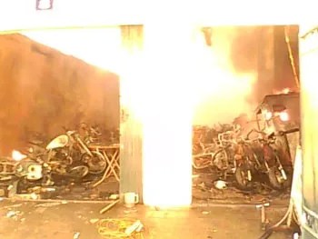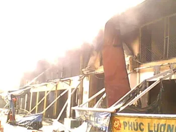 Ngọn lửa đã thiêu hủy dãy ki-ốt chứa hàng trăm xe máy của các hộ kinh doanh. Hàng trăm người náo loạn chạy vào các cửa hàng đang bốc cháy để cố dắt những chiếc xe và thu dọn tài sản đưa ra ngoài. Do khu chợ có nhiều vật liệu bắt cháy, nhất là xăng từ các bình nhiên liệu trong xe gắn máy nên ngọn lửa lan nhanh.