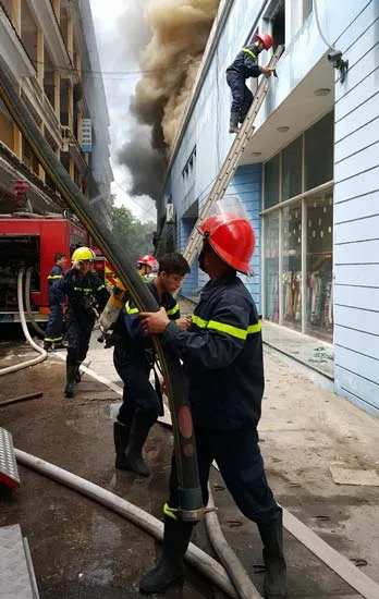 Ngay sau khi nhận được tin báo Phòng Cảnh sát Phòng cháy chữa cháy quận Thanh Xuân đã huy động 6 xe chữa cháy đến hiện trường.