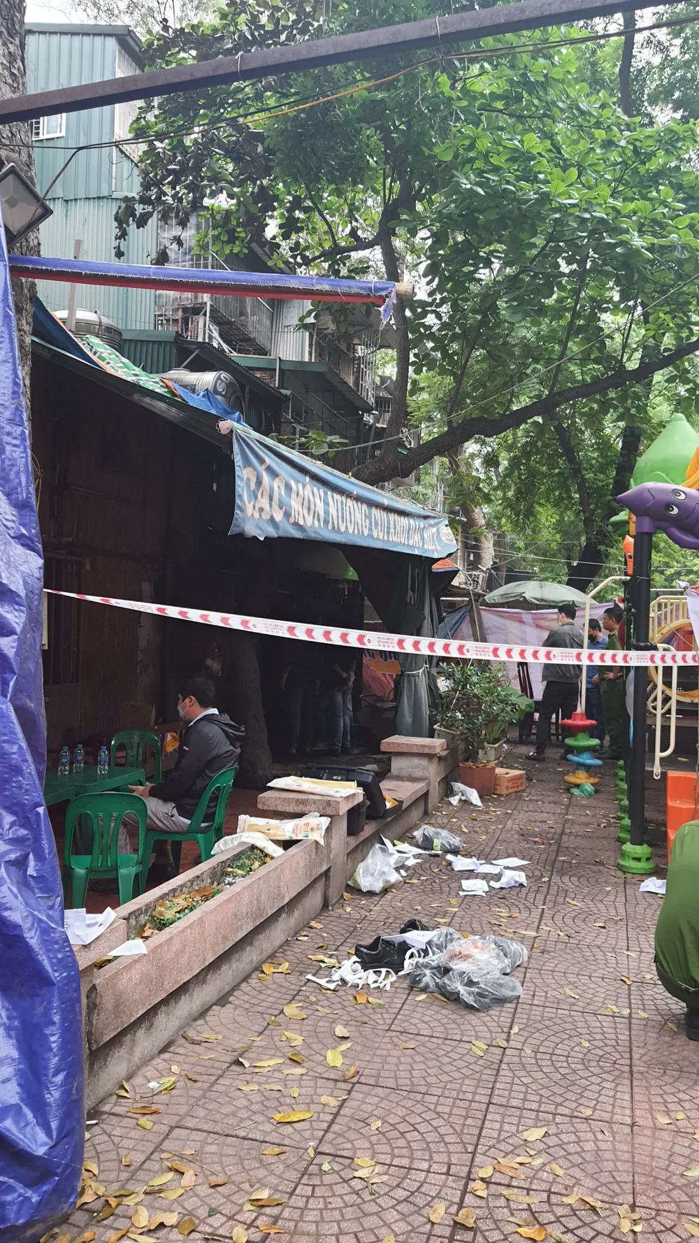 Theo ghi nhận của phóng viên tại hiện trường vào sáng nay, toàn bộ khu vực nhà nạn nhân và sân chơi tập thể phía trước nhà nạn nhân đã được lực lượng chức năng phong tỏa hoàn toàn để phục vụ việc khám nghiệm hiện trường.