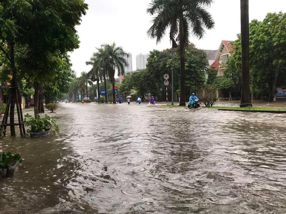 Mưa to mãi không ngớt, nhiều tuyến đường Hà Nội ngập chìm trong nước sáng nay 21-7