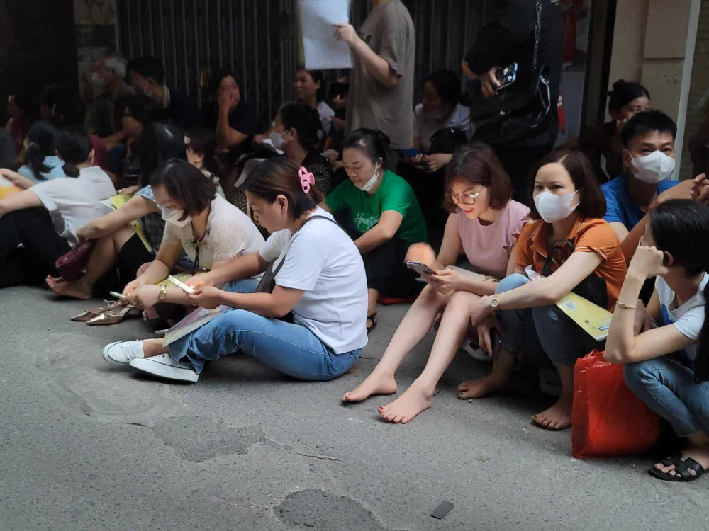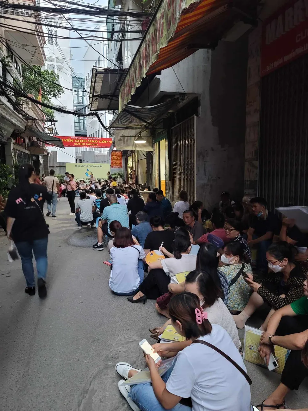 Dưới đây là những hình ảnh về việc phụ huynh học sinh vất vả, mệt mỏi để có 1 suất cho con em mình vào lớp 10 tại Trường THPT Hoàng Cầu: