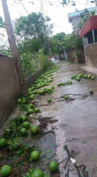 Bưởi non của nông dân ở tỉnh Hưng Yên bị gió bão quật rụng rạng sáng 28-7