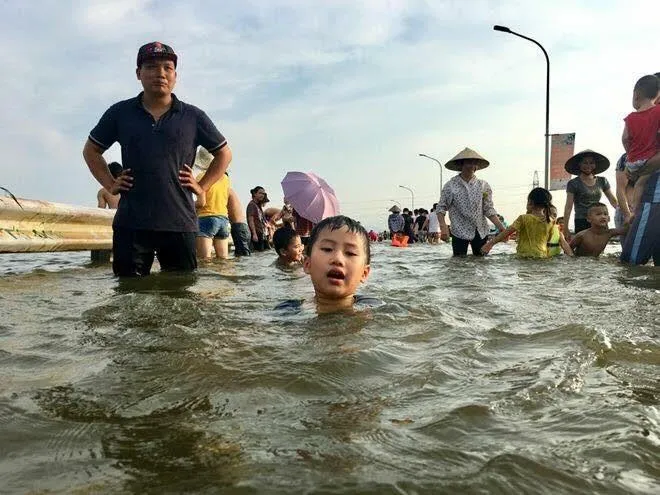 Người dân ở các xã Cấn Hữu, Đông Yên vì hiếu kỳ, buổi chiều thường kéo nhau ra tắm lội, trẻ em tập bơi, thanh niên câu cá, kéo tôm…