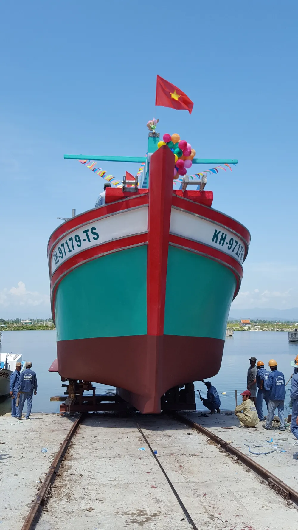Sáng 5-9, tại xưởng đóng tàu Công ty TNHH đóng tàu Composite Khánh Hòa (phường Ninh Hải, thị xã Ninh Hòa, tỉnh Khánh Hòa), Nghiệp đoàn nghề cá Phước Đồng đã tổ chức hạ thủy tàu Trường Sa 05.
