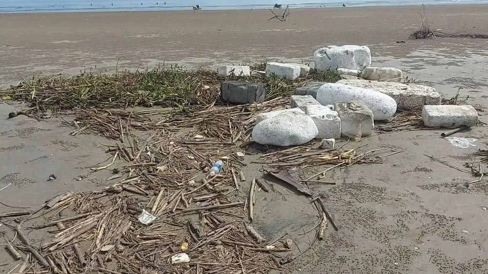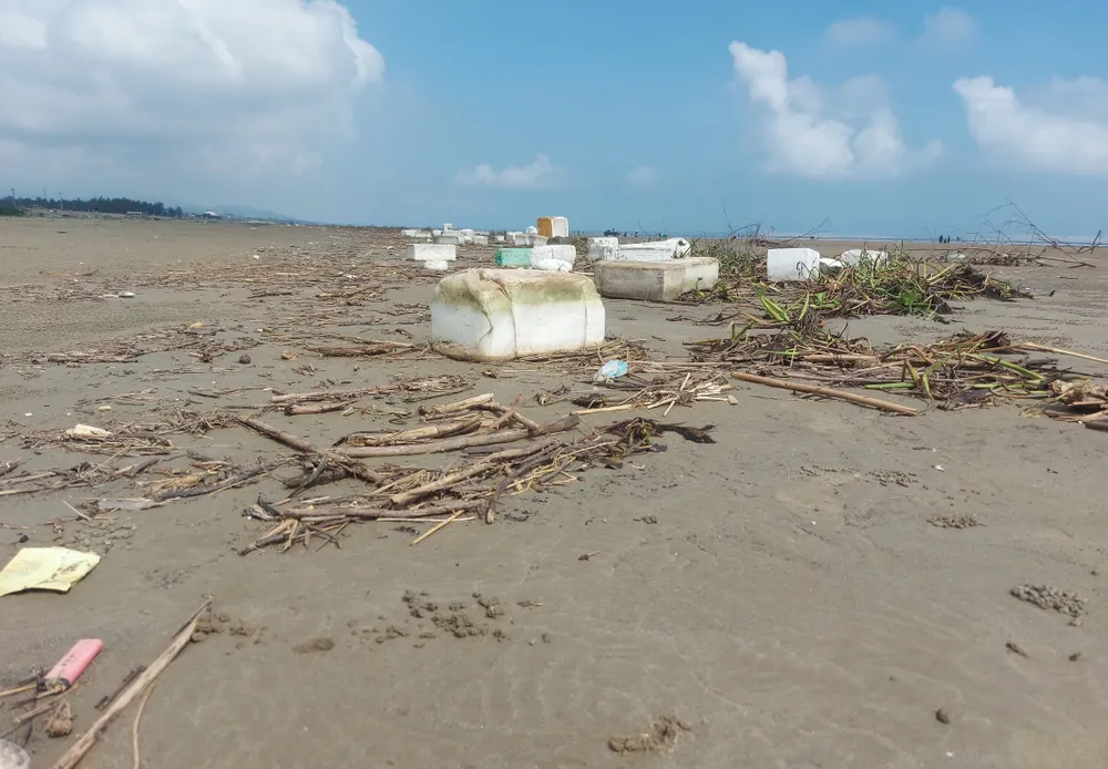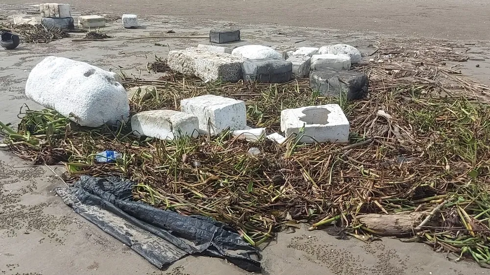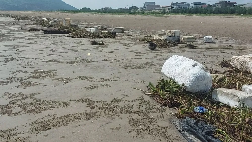 Nhiều thùng xốp dạt vào bãi biển huyện Lộc Hà