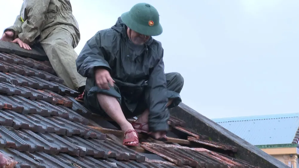 | Giúp dân lợp lại mái ngói hư hỏng do lốc xoáy |