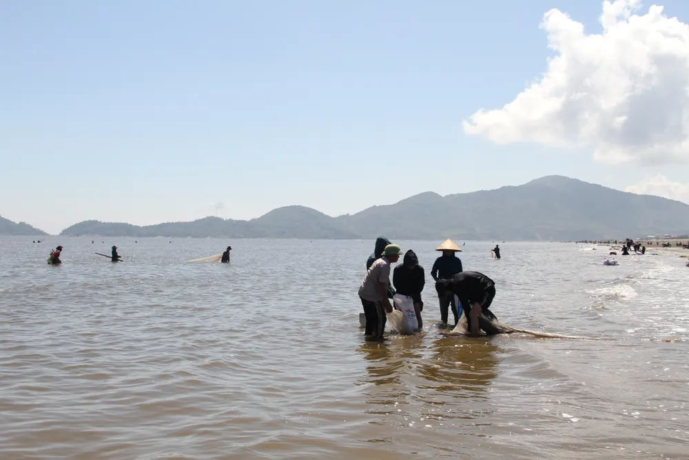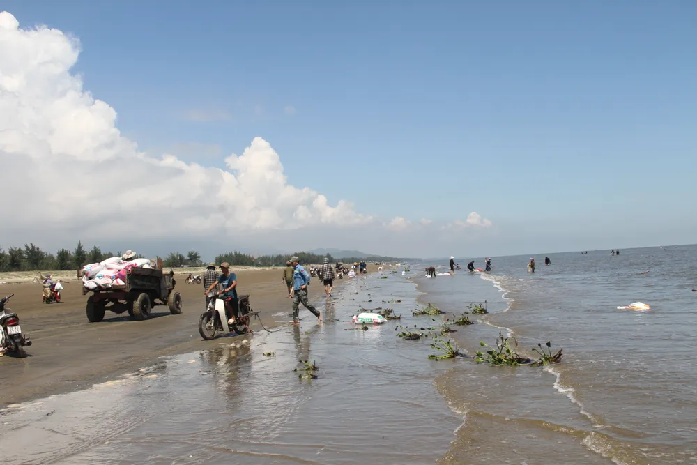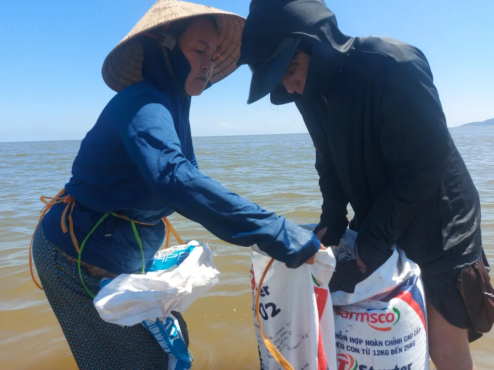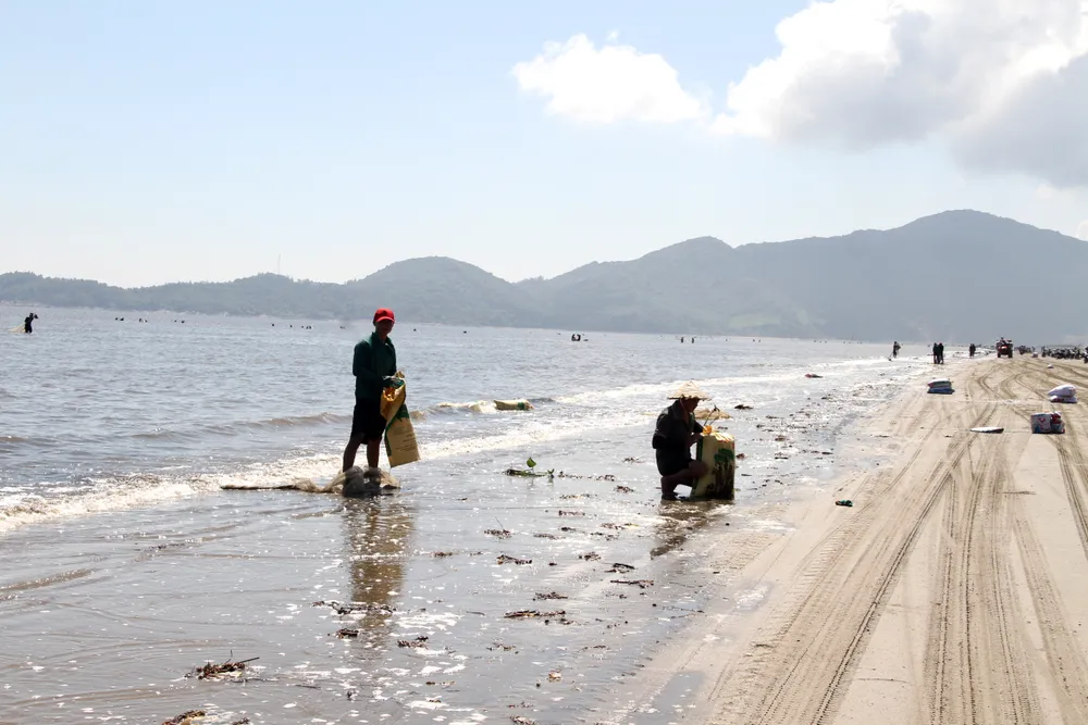| Người dân cào "lộc biển" ốc ruốc dọc bờ biển |