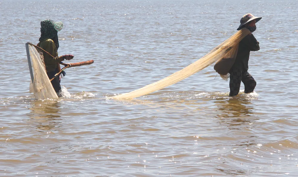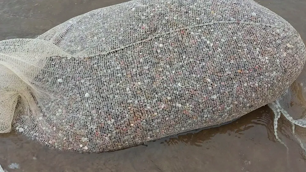 Có mặt tại đây, chúng tôi ghi nhận, dọc bờ biển của các xã này, từ sáng sớm, khi thủy triều xuống, người dân mang theo những dụng cụ thủ công là chiếc cào bằng tre và nhựa dài 1,5 đến 2,5m, có gắn túi lưới ở phía đáy dài 5-8m. Sau đó, tập trung thành từng nhóm lội ra ngoài mặt nước biển ngang bụng, cách bờ khoảng 10-50m cào bắt con ốc ruốc nằm trộn lẫn dưới lớp cát.