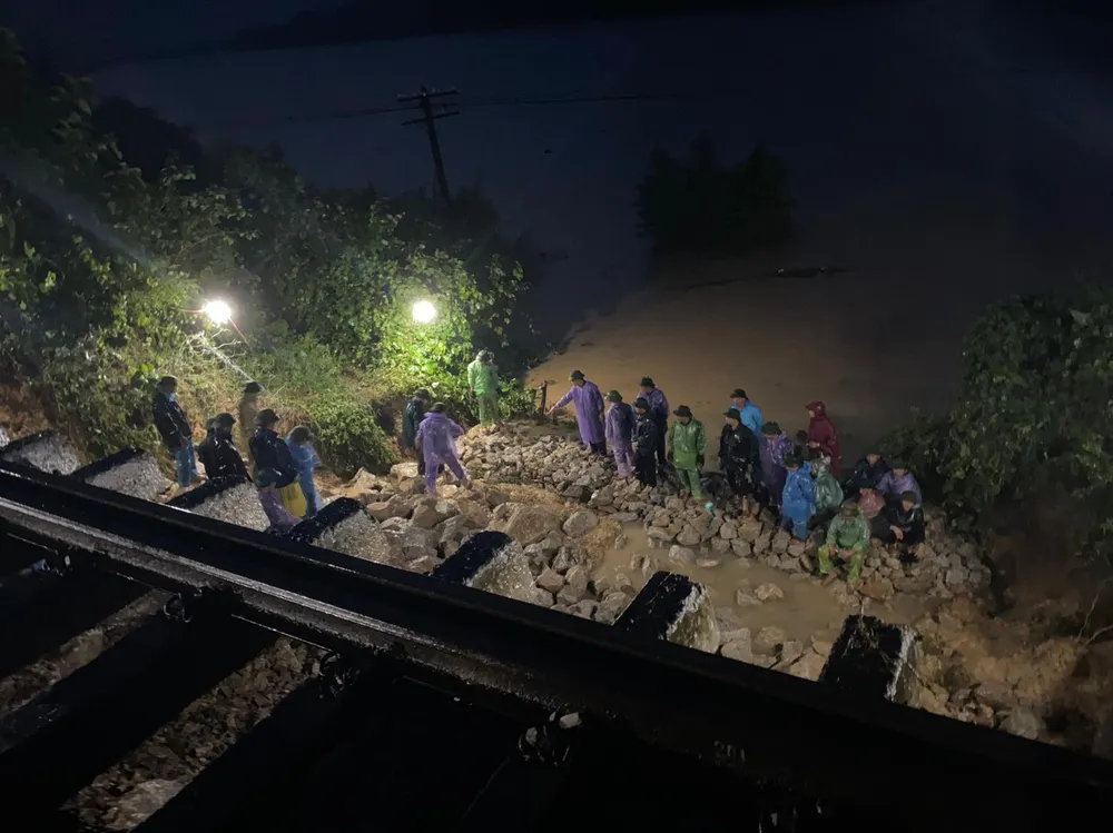 | Các đơn vị chức năng xuyên đêm nỗ lực khắc phục sạt lở đường sắt Bắc - Nam |