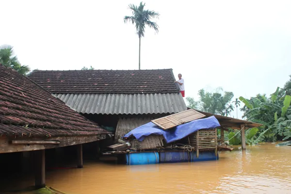 Nhà dân ở vùng rốn lũ Phương Mỹ, huyện Hương Khê vẫn ngập chìm trong biển nước