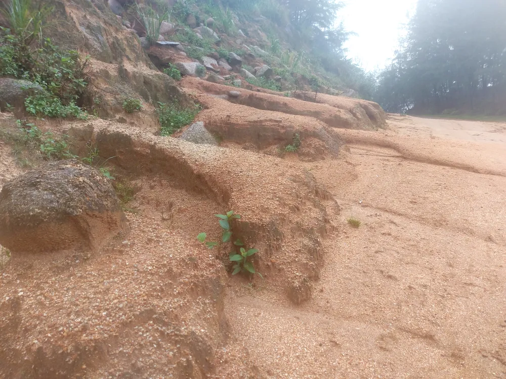 >> Một số hình ảnh tiềm ẩn nguy cơ sạt lở trên tuyến đường quốc phòng ven biển Cẩm Lĩnh - Kỳ Xuân