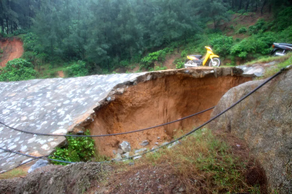 Trên tuyến đường quốc phòng ven biển nối liền xã Cẩm Lĩnh (huyện Cẩm Xuyên) và xã Kỳ Xuân (huyện Kỳ Anh, tỉnh Hà Tĩnh), tình trạng sạt lở do ảnh hưởng mưa lớn kéo dài đã tạo thành một "hố tử thần", gây nguy cơ mất an toàn cho người dân và các phương tiện lưu thông qua lại.