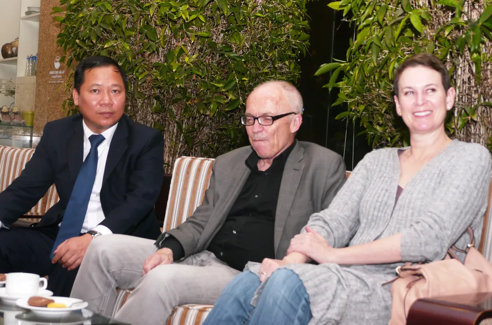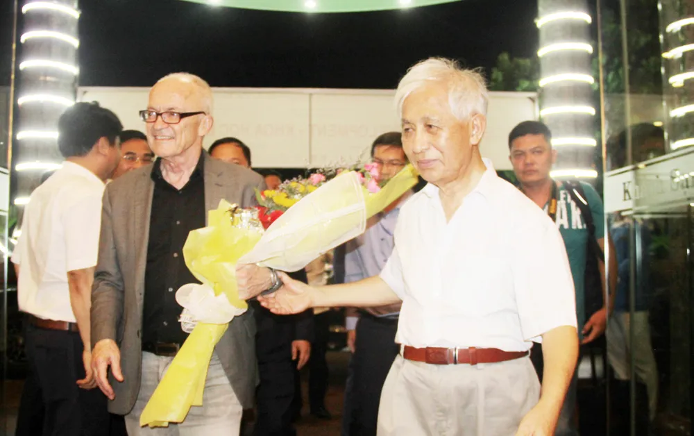 Chiều tối 8-5, Phó chủ tịch UBND tỉnh Bình Định Nguyễn Phi Long và GS Trần Thanh Vân, Chủ tịch Hội Gặp gỡ Việt Nam cùng GS Lê Kim Ngọc (vợ GS Trần Thanh Vân) đã ra đón tiếp, tặng hoa chào mừng GS Gerard ‘t Hooft - giải Nobel Vật lý năm 1999 và GS Finn Kydland - người đoạt giải Nobel Kinh tế năm 2004 vừa đến TP Quy Nhơn (Bình Định), để tham dự chương trình "Gặp gỡ Việt Nam" lần thứ 14 - năm 2018.