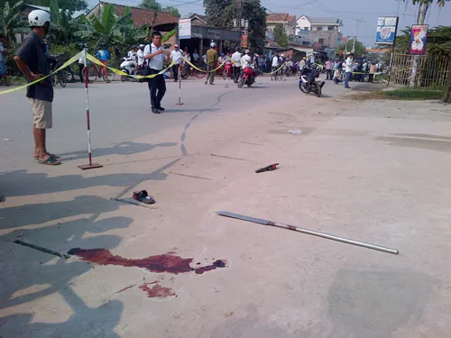 Vết máu và mã tấu tự chế bỏ lại hiện trường.