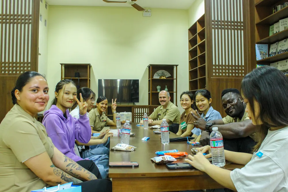 Nhiều thành viên đoàn hải quân Hoa Kỳ đánh giá cao trình độ tiếng Anh của sinh viên |