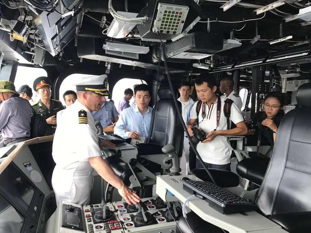 Trung tá Douglas K.Meagher, Chỉ huy tàu USS Coronado (LCS 4) đã giới thiệu sơ bộ về công năng cũng như nhiệm vụ của tàu USS Coronado.
