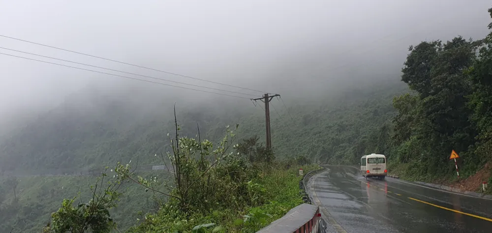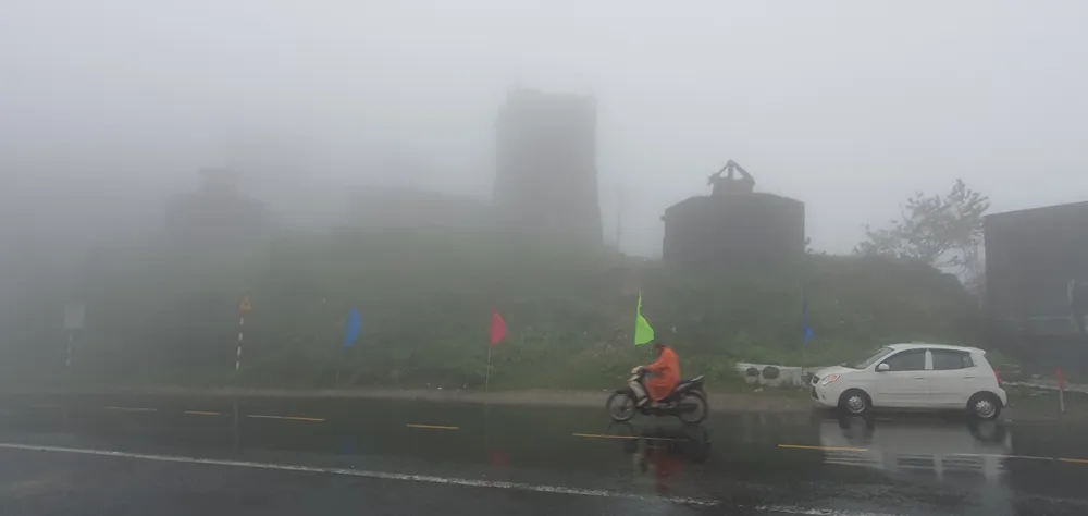 Không khí lạnh, từng đợt gió mạnh kết hợp với mưa gây khó khăn cho người dân vượt đèo