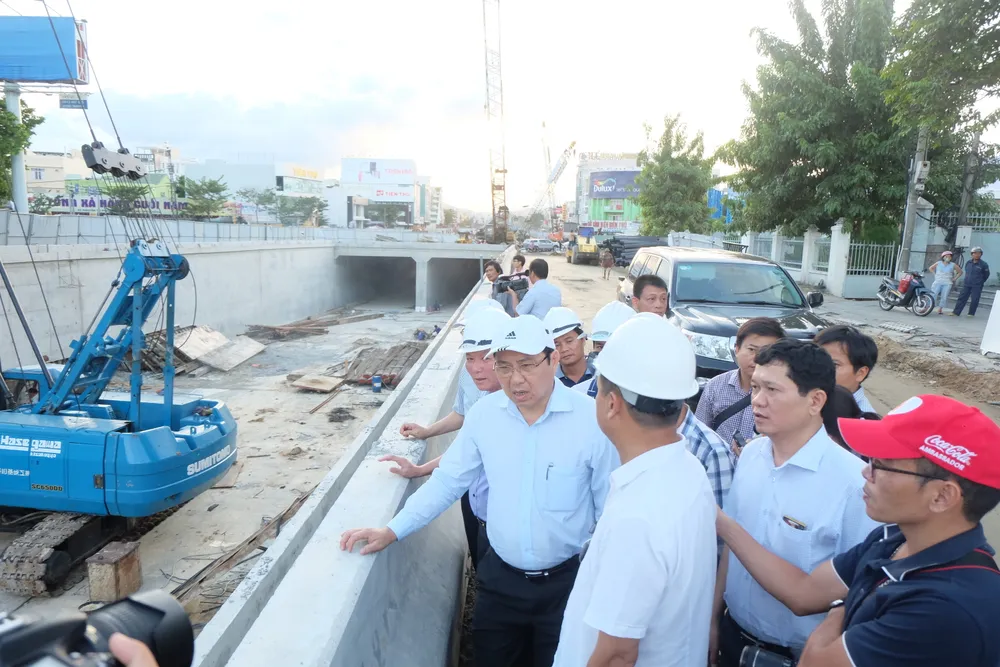 Báo cáo với đoàn công tác tại công trường, ông Lương Thạch Vỹ, Giám đốc Ban Quản lý Dự án Đầu tư xây dựng các công trình hạ tầng ưu tiên Đà Nẵng (đơn vị điều hành dự án) cam kết, hầm chui đảm bảo hoàn thành trước ngày 29-10.