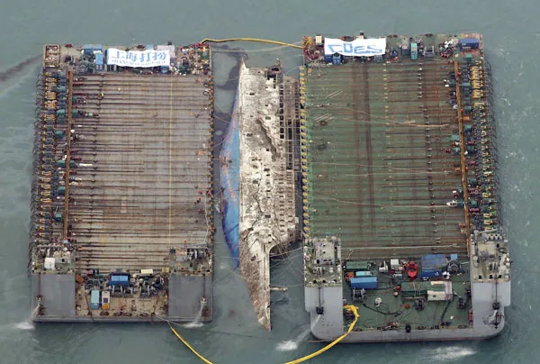 Trên thế giới, nhiều tàu lớn bị đắm thường được cắt thành nhiều phần trước khi trục vớt, nhưng giải pháp này không được chọn cho phà Sewol vì Hàn Quốc hy vọng tìm thấy thi thể những nạn nhân còn mất tích trong xác phà.