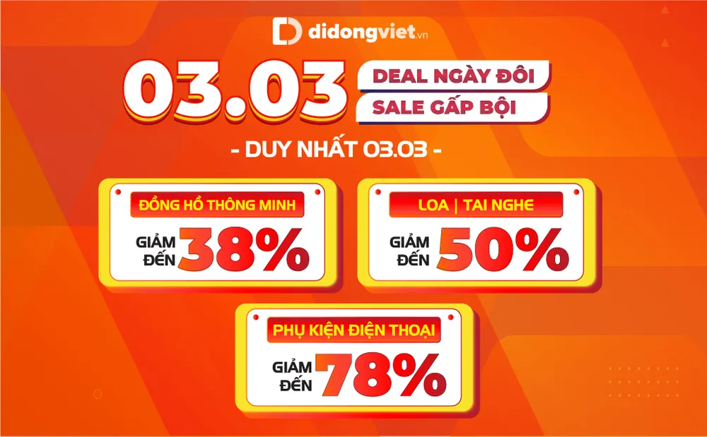 Ghi nhận tại hệ thống Di Động Việt, đại lý ủy quyền chính thức của Apple tại Việt Nam (AAR), đối tác toàn diện của Samsung, Xiaomi, OPPO…, duy nhất ngày 3-3, hệ thống sẽ đem đến cho người dùng những ưu đãi siêu “hời”….