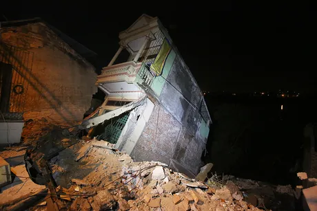 Tính đến sáng nay đã có 7 ngôi nhà đổ xuống sông và 25 nhà khác có nguy cơ sụt lún.