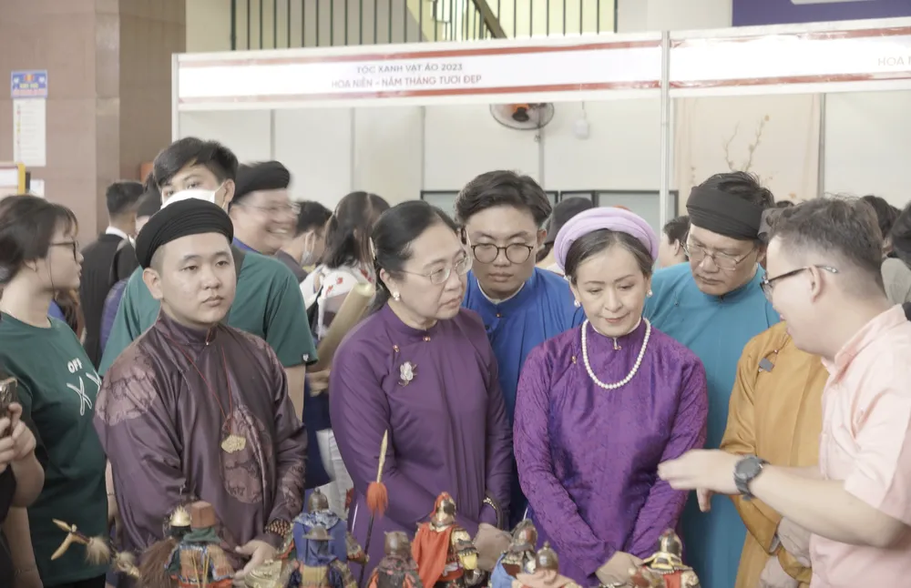 Ngày hội Việt phục và Văn hóa truyền thống Tóc xanh vạt áo mùa 3 diễn ra từ ngày 23-4 tại Trường ĐH KHXH-NV (ĐH Quốc gia TPHCM). Theo Tiến sĩ Lê Thị Ngọc Điệp, Chủ tịch Hội đồng Trường ĐH KHXH-NV, Tóc xanh vạt áo lần 3 nằm trong khuôn khổ Tuần lễ văn hóa Sóng đôi 2023 với sự tham gia của 15 đơn vị với mong ước trở thành ngày hội văn hóa truyền thống, tiếp nối di sản cha ông.