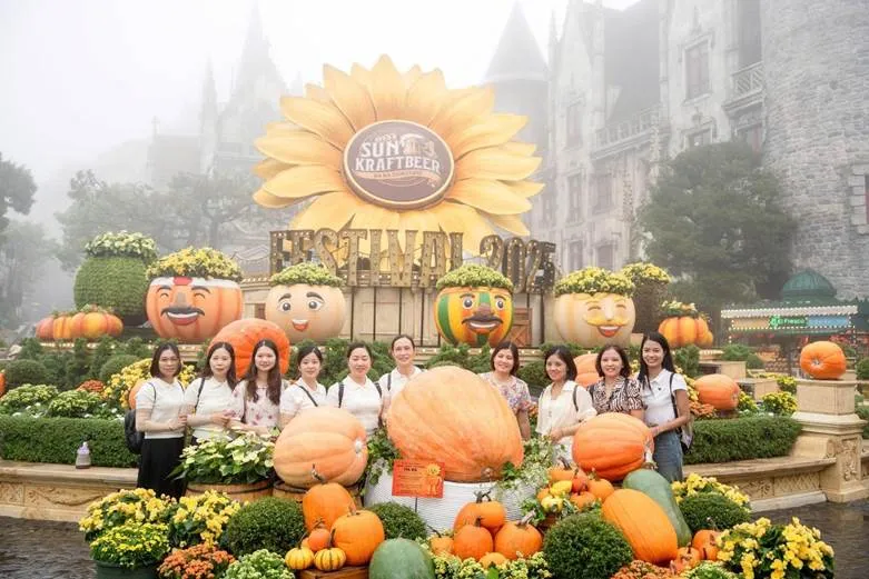Điểm nhấn thu hút khách dịp Lễ Quốc khánh năm nay tại Bà Nà là Quảng trường Vĩnh Cửu được trang hoàng rực rỡ với gần 10 tấn bí ngô tươi, tạo nên khung cảnh mùa thu vàng vô cùng ấn tượng.