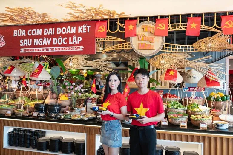 Các nhà hàng buffet tại đây đã trang trí nhiều món ăn, bánh ngọt lấy cảm hứng từ màu cờ sắc áo của dân tộc.