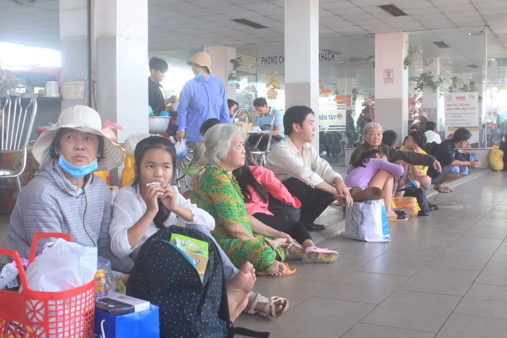 Nhiều người dân ngồi chờ xe để xuất bến. Ảnh : CHÍ PHƯỚC