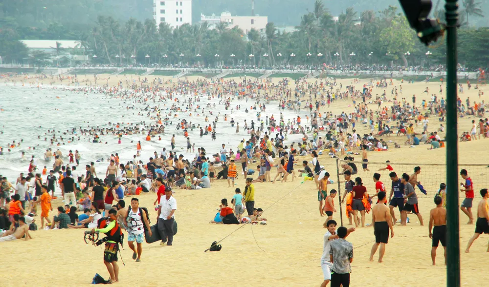 Dòng người ùn ùn đổ về bủa vây bãi tắm Quy Nhơn.
