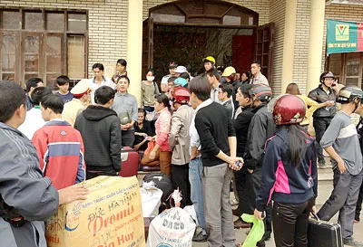 Hành khách tại Hà Tĩnh tràn cả ra lòng đường quốc lộ 1A để đón xe vào Nam.