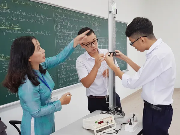 Cô giáo Phan Thị Hồng Loan hướng dẫn học sinh trong giờ thực hành. Ảnh: Nguyên Khôi