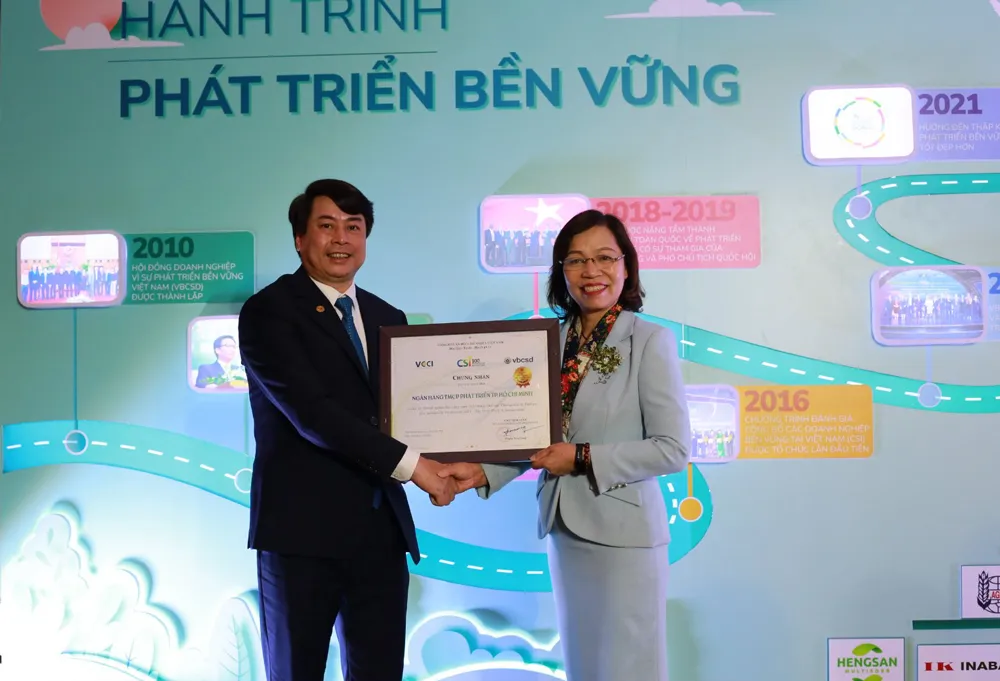 Cùng ngày, HDBank tiếp tục được ghi nhận trong danh sách top 10 Bảng xếp hạng các doanh nghiệp bền vững Việt Nam 2021