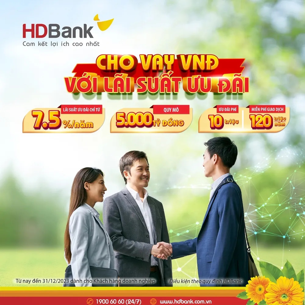 Cụ thể, từ nay đến 31-12-2023, doanh nghiệp trên cả nước hoạt động ở tất cả các lĩnh vực sẽ có thêm nguồn vốn ưu đãi mở rộng từ HDBank.