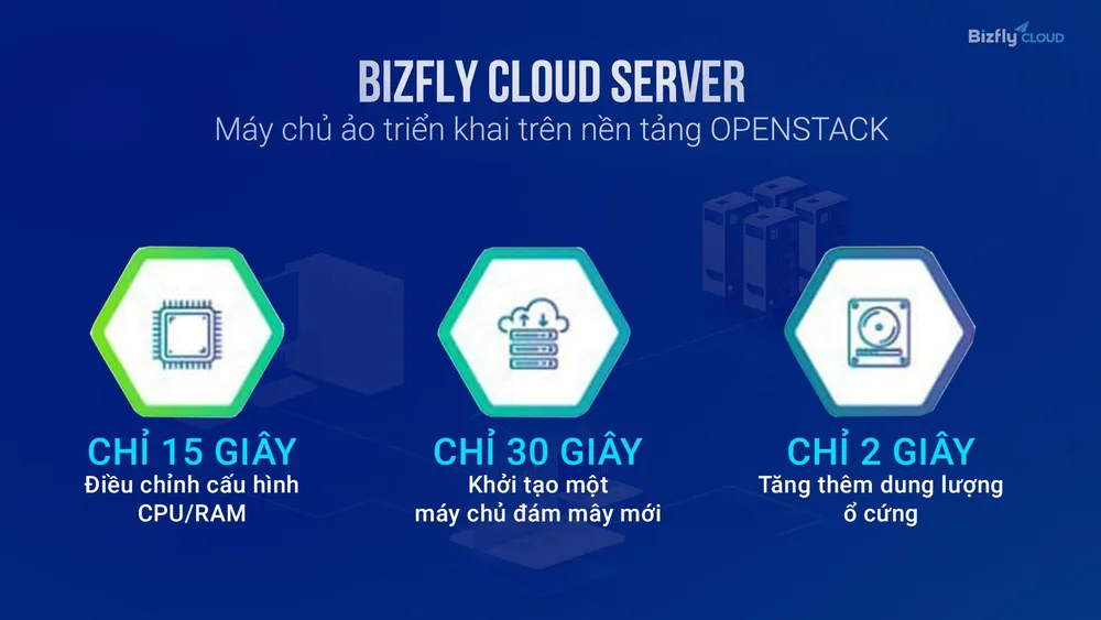 Bizfly Cloud Server - Máy chủ ảo điện toán đám mây self-serving số 1 Việt Nam, vận hành 300+ website thuộc hệ thống VCCorp và 3000+ doanh nghiệp như SSI. Thu Cúc, Ahamove, Đất Xanh miền Bắc, Vingroup…