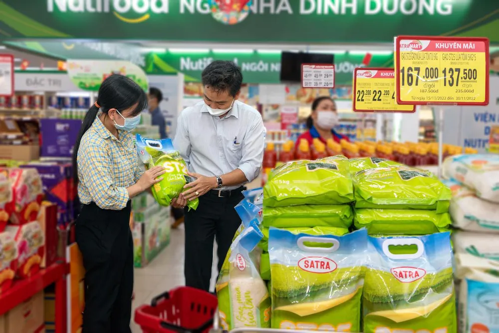 Từ ngày 1 – 15-12-2022, tại hệ thống bán lẻ SATRA, nhiều sản phẩm được bán với “giá sốc” như chả giò Real hải sản còn 50.000 đồng/gói 400gram, dầu ăn Nakydaco còn 40.500 đồng/chai 1 lít, nước giặt LIX đậm đặc còn 79.900 đồng/túi 3,5 ký, café Vinacafe 3in1 Gold orginal còn 76.000 đồng/bịch 40 gói 20gram… và rất nhiều sản phẩm khác.