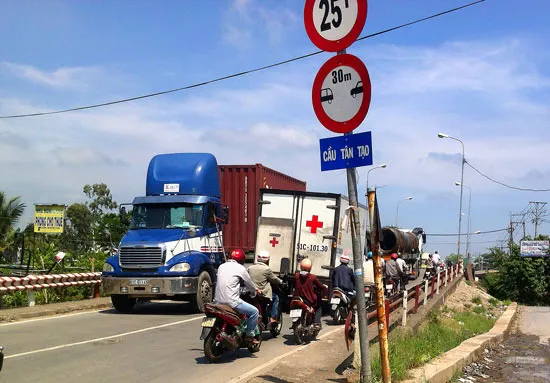 Cầu Tân Tạo tải trọng 25 tấn, nhưng hàng ngày xe container trên 30 tấn vẫn lưu thông qua đây bất kể ngày đêm.