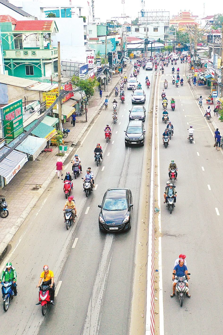 Vì muốn thoát nhanh hơn nhiều mô tô lấn sang đường ngược chiều trên đường Huỳnh Tấn Phát quận 7