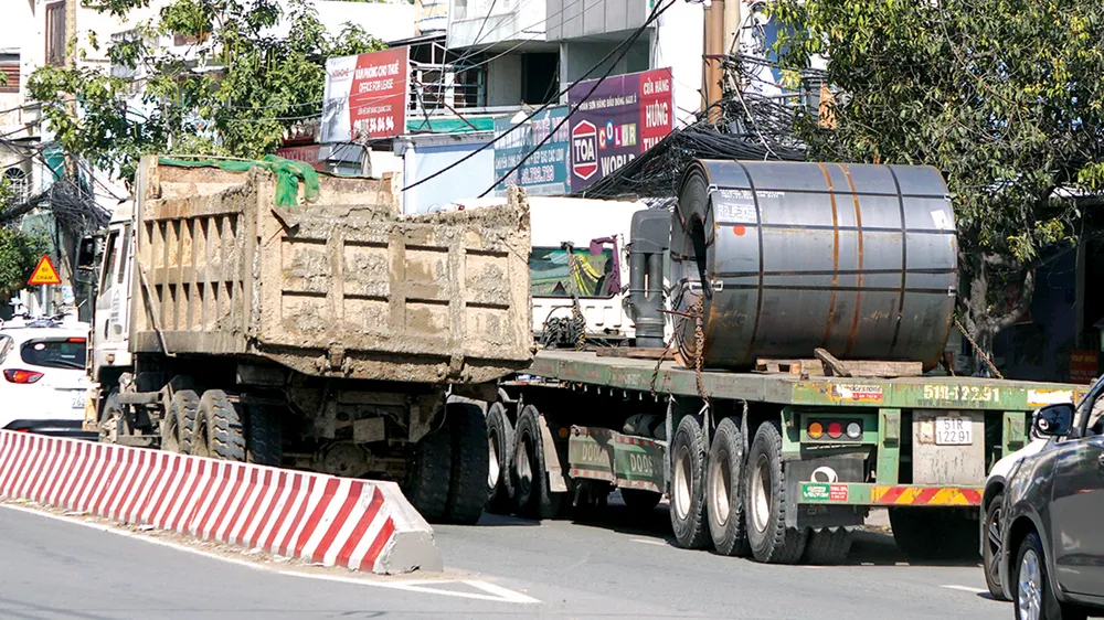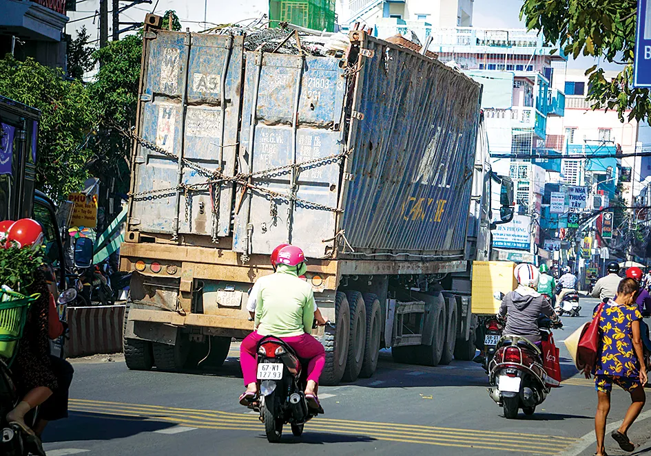 Xe lớn chuyển làn trong nội thị dễ gây tai nạn cho xe 2 bánh vì các điểm mù