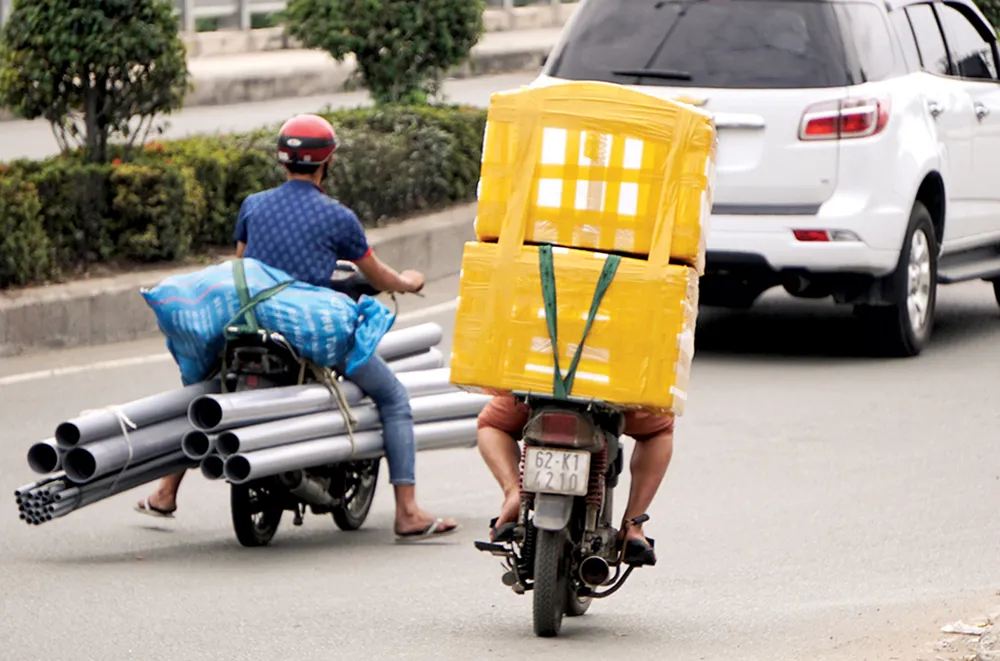 Cách vận chuyển hàng hóa cồng kềnh bằng xe 2 bánh là nỗi khiếp sợ của người tham gia giao thông