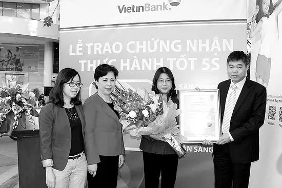 Còn thực tế tại Phòng Giao dịch (PGD) Hoàng Diệu - VietinBank Ba Đình, mới đây PGD này đã được trao Chứng nhận thực hành tốt 5S. Đây cũng là PGD đầu tiên thuộc hệ thống ngân hàng được trao Chứng nhận thực hành tốt 5S: sạch đẹp hơn, tiện lợi hơn, khách hàng hài lòng hơn…
