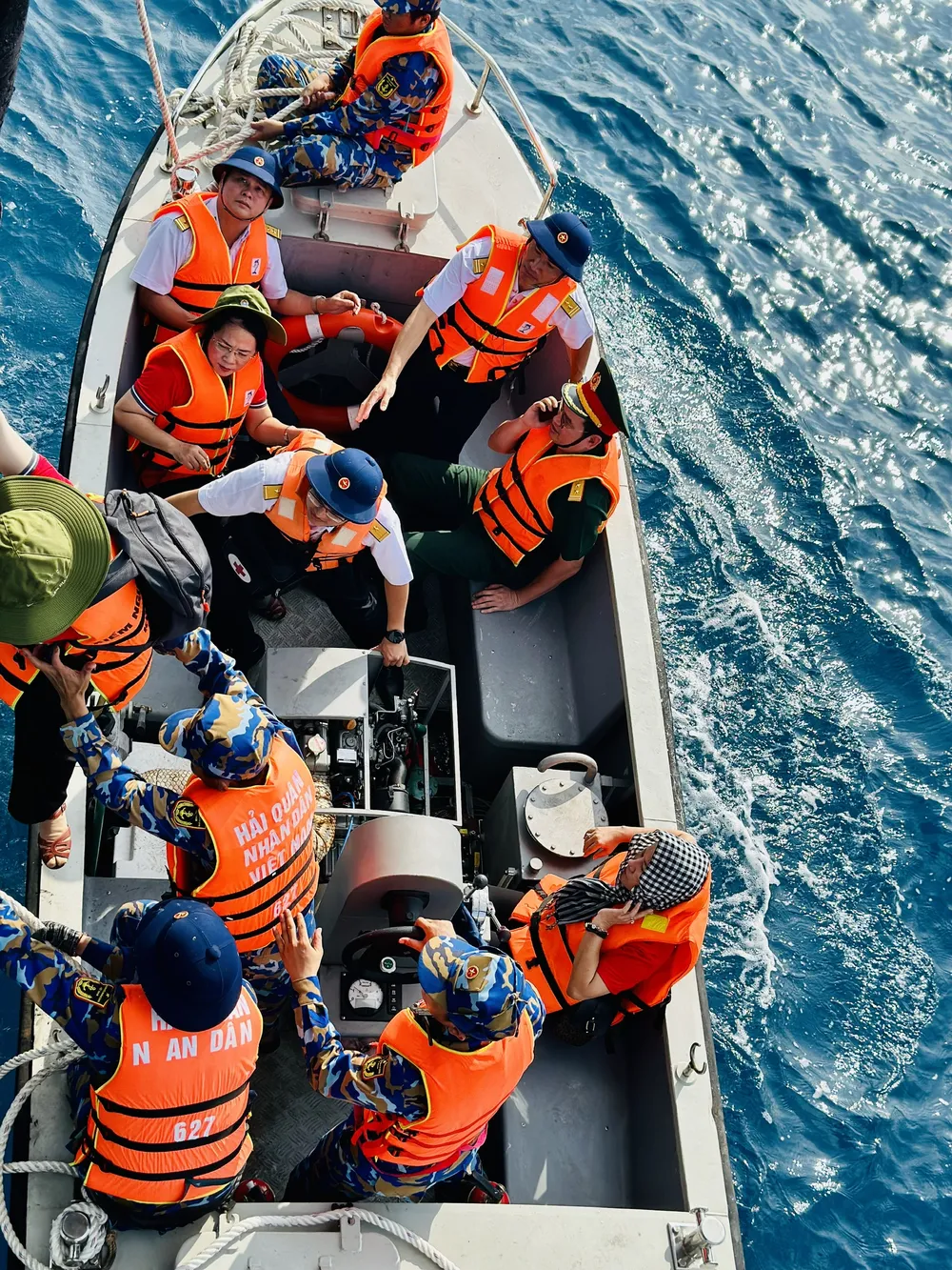 Đoàn chuyển quà ra Nhà giàn bằng xuồng. Ảnh: CHÍ THẠCH |