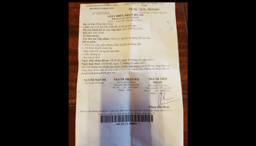 Tuy nhiên, đến nay đã hơn 3 năm, bà Hường nhiều lần nhờ cán bộ ở bộ phận một cửa làm nhưng đều nhận được câu trả lời không giải quyết mà vẫn không có bất cứ văn bản nào giải thích.