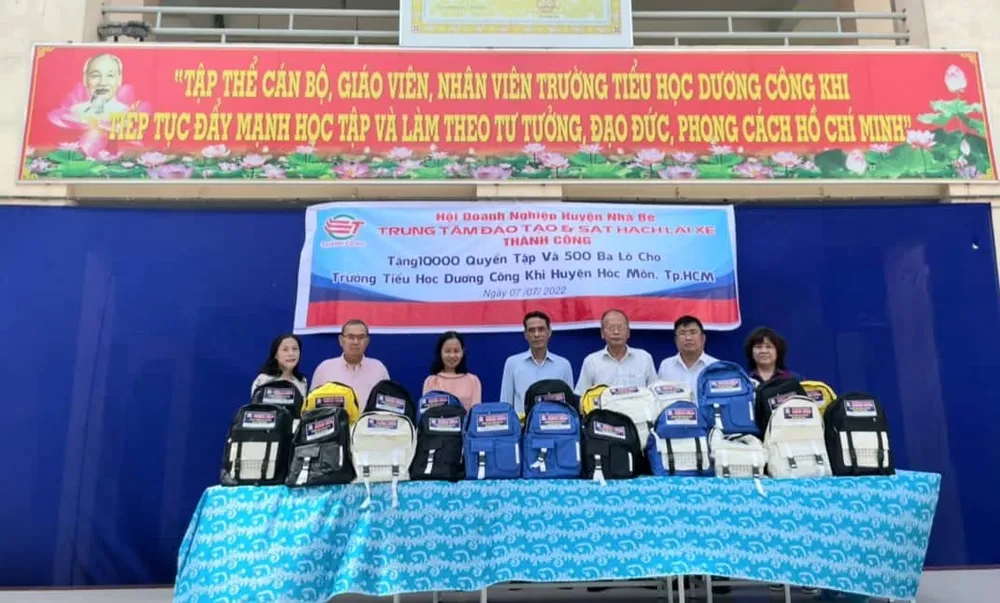 Trong đó, Hội Doanh nghiệp huyện Nhà Bè và Trung tâm đào tạo, sát hạch lái xe Thành Công ủng hộ hơn 10.000 quyển tập và 500 ba lô học sinh trị giá 140 triệu đồng. Số dụng cụ học tập trên sẽ được chuyển đến các em học sinh thuộc hộ nghèo, con công nhân lao động có hoàn cảnh khó khăn trên địa bàn trong năm học 2022-2023.