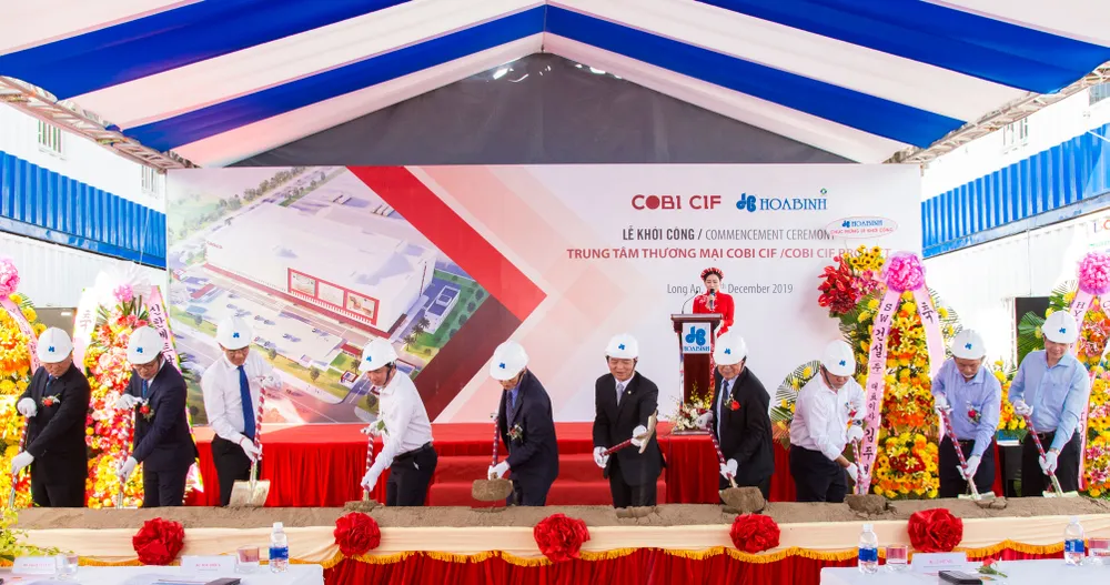 Trung tâm Thương mại COBI CIF do Công ty TNHH Cobi One làm chủ đầu tư, có quy mô gồm khối nhà chính cao 5 tầng và khối nhà công vụ cao 3 tầng. Đây là trung tâm thương mại đặc thù chuyên cung cấp và phân phối vật liệu xây dựng và đồ nội thất tại Khu công nghiệp Long Hậu, tỉnh Long An, có tổng vốn đầu tư 40 triệu USD. Tập đoàn Xây dựng Hòa Bình là Tổng thầu thi công kết cấu, hoàn thiện, cơ điện, hạ tầng và cảnh quan, tổng giá trị gói thầu 466 tỷ đồng, thời gian thi công dự kiến trong 11 tháng.