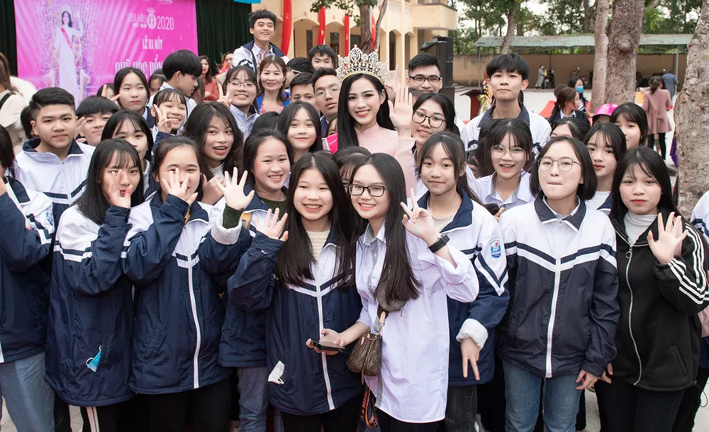 Cùng với thầy cô giáo và các em học sinh, Tân Hoa hậu Việt Nam 2020 cũng đã có hoạt động trồng cây xanh để tri ân các thầy cô - những người đã dìu dắt cô trong suốt những năm tháng qua.