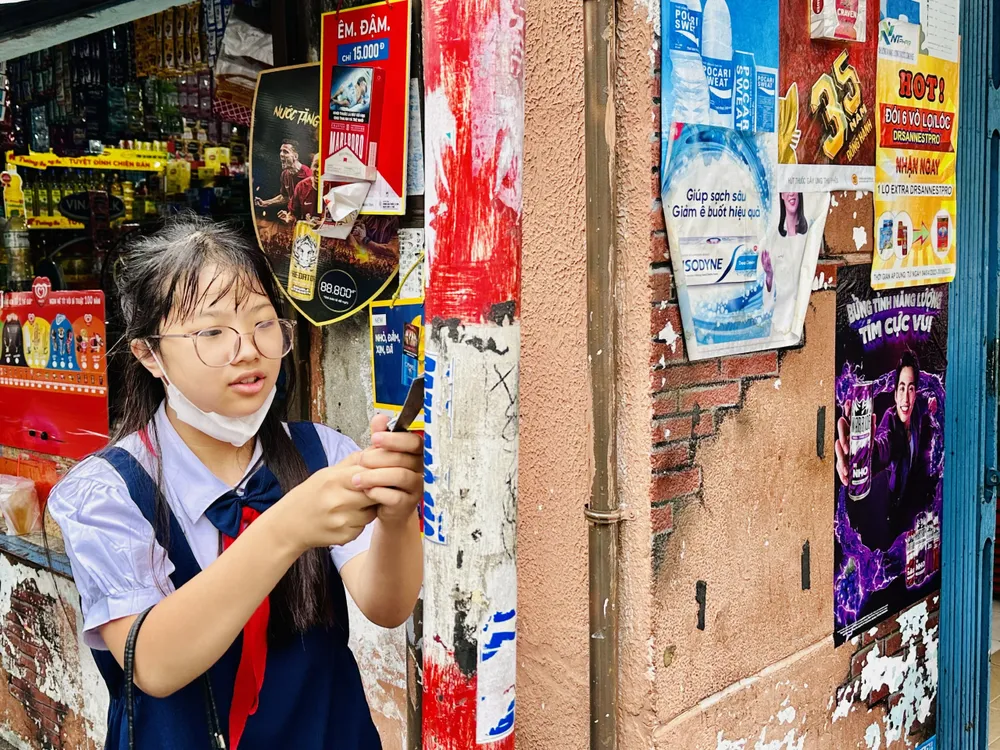 Học sinh đang bóc, xóa quảng cáo "tín dụng đen"