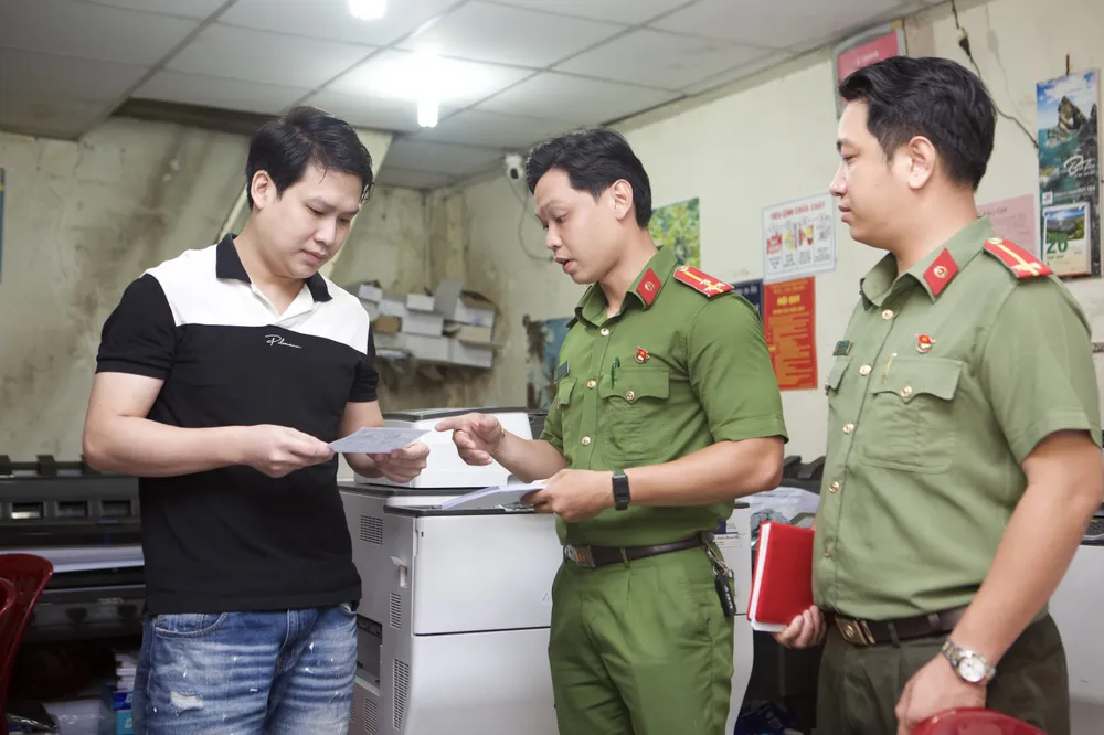 Công an tới tận cơ sở photocopy tuyên truyền, ký cam kết không in ấn sản phẩm quảng cáo cho vay "tín dụng đen"