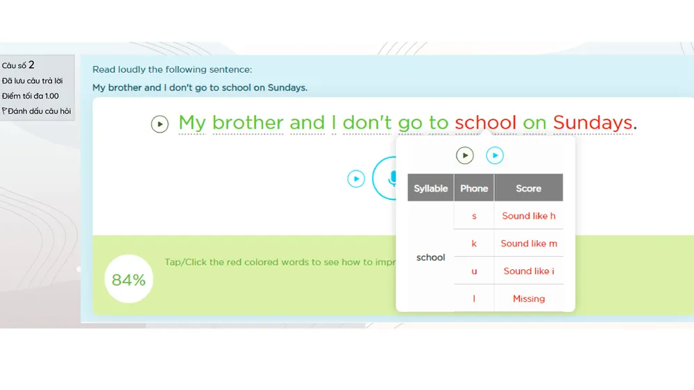 Cụ thể, học sinh của chương trình TATH sẽ được luyện tập cách phát âm các từ vựng, cấu trúc câu tiếng Anh với một hệ thống AI có khả năng đánh giá và đưa ra những phản hồi chi tiết theo thời gian thực. Việc này cho phép học sinh có thể chủ động luyện tập phát âm những từ vựng và cấu trúc câu đã được học trên lớp vào bất cứ lúc nào theo lịch ôn luyện riêng phù hợp với bản thân, qua đó giúp các em làm chủ năng lực phát âm một cách hiệu quả. Tính năng này sẽ được triển khai đồng bộ trên toàn hệ thống EMG LMS và hoàn toàn miễn phí cho các học sinh của chương trình TATH.