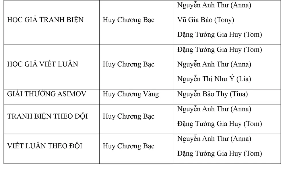 Các em không những đã vươn ra được tầm cỡ thế giới như tinh thần học tập xuất sắc mà nhà trường luôn định hướng cho học sinh của mình mà còn đạt được những kết quả rất đáng để ghi nhận.